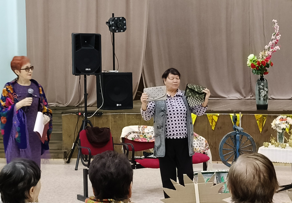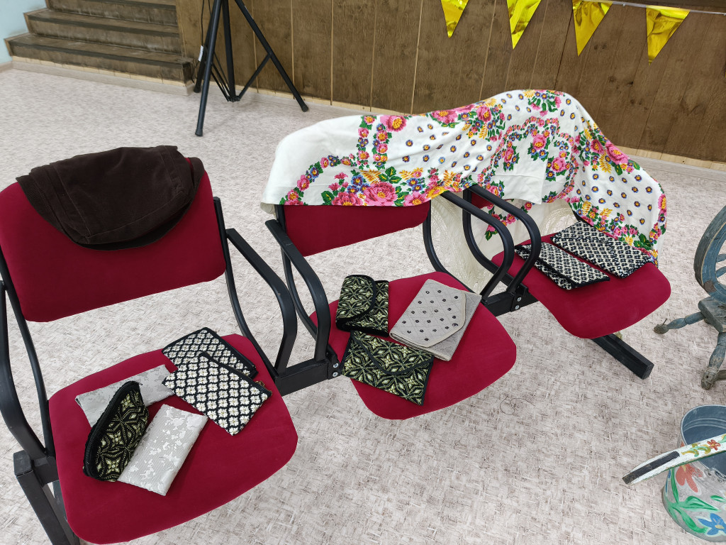 Здесь были представлены связанные из пряжи носки, шапки, сшитые из ткани сумки, кошельки, из лоскутков - одеяла, выполненные из бисера ожерелья, браслеты, брелки, ёлочные украшения и, даже, жилетки, сумки и рюкзаки. Наши мастерицы также помогают участникам СВО: вяжут теплые носки, варежки, делают валики, отправляют гуманитарную помощь.
